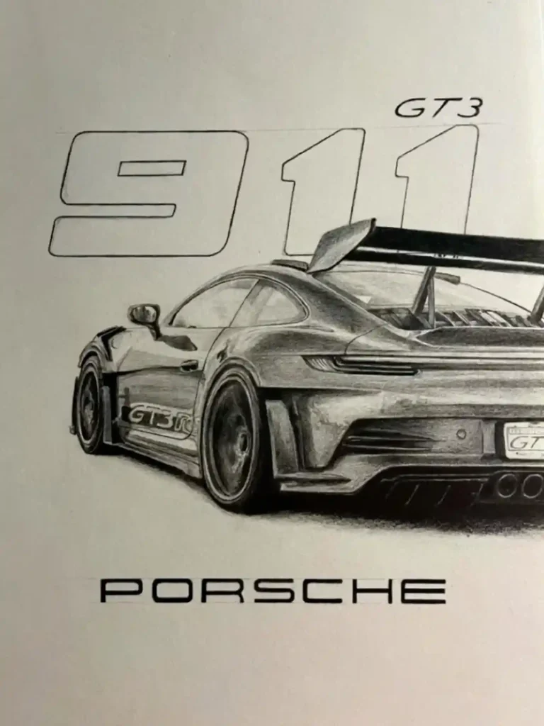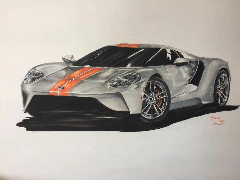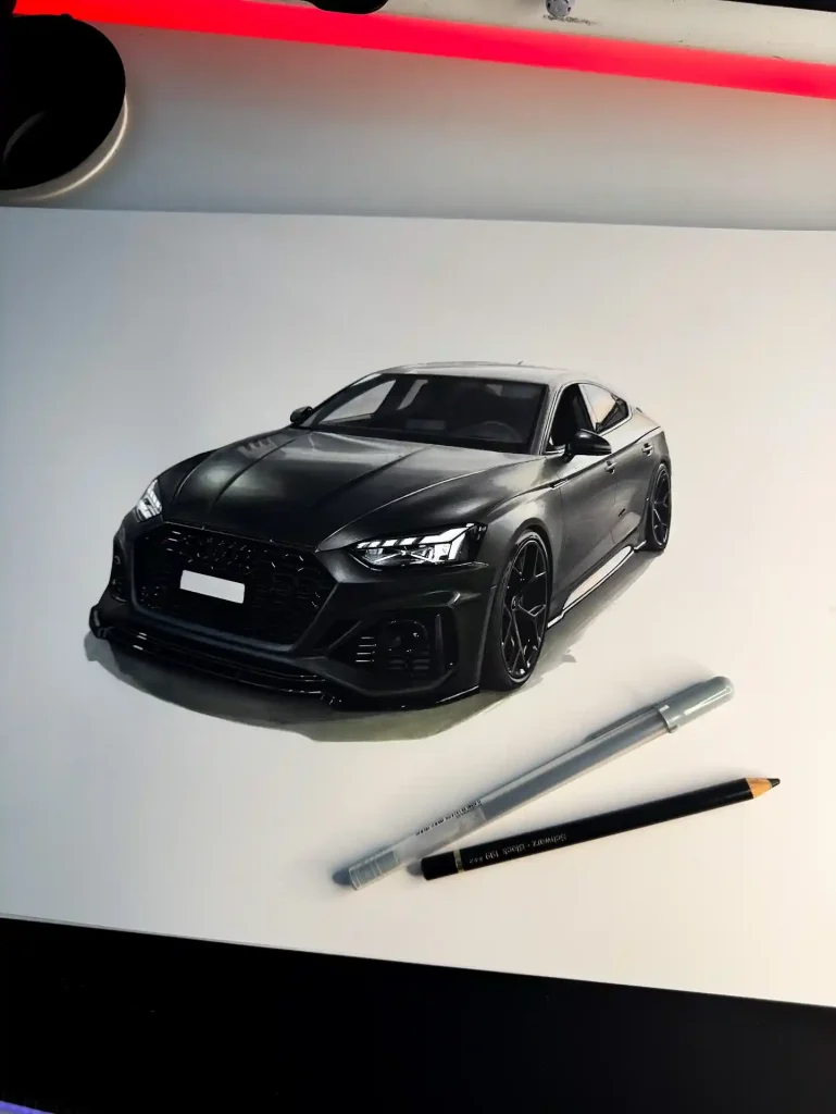 Capturing an all-black car is one of the toughest challenges, and this artist nailed it. Using subtle shifts in tone and razor-sharp white highlights, they’ve sculpted the car’s aggressive form out of the darkness. The deep, matte black finish gives it a stealthy, menacing presence, showcasing an incredible mastery of light on a difficult subject.