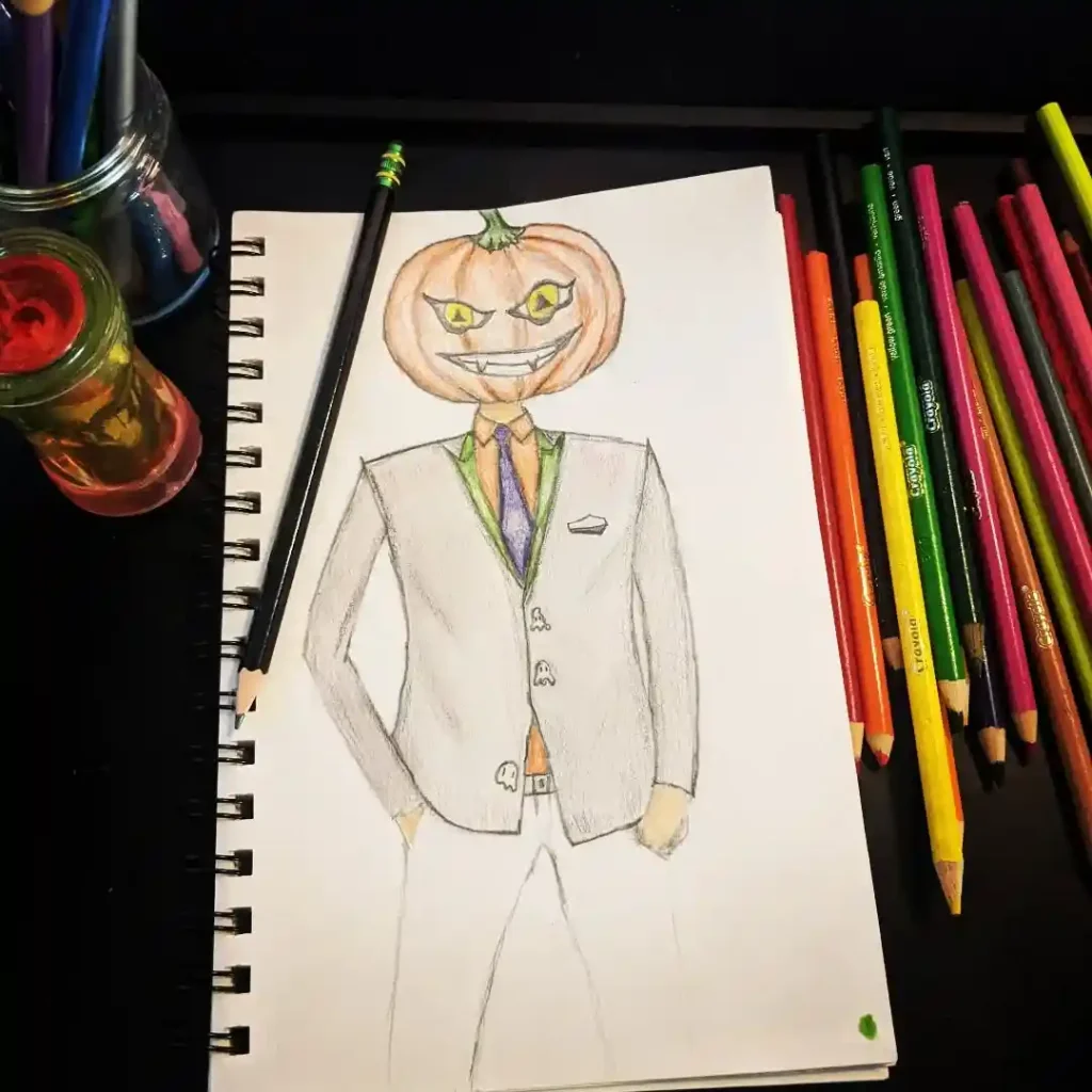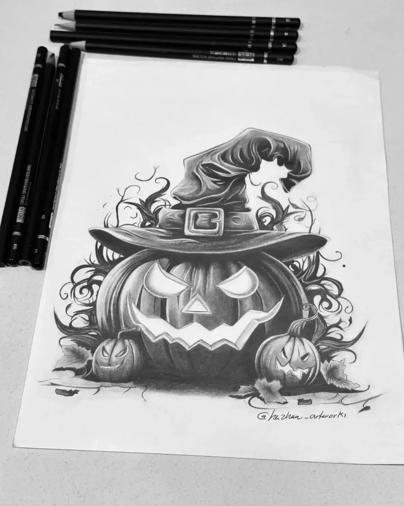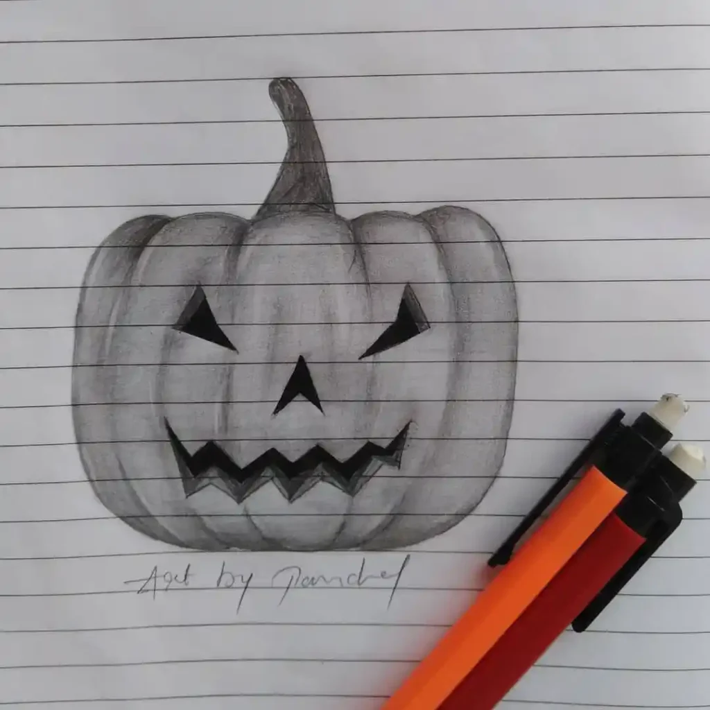 Proof that you don’t need fancy materials to create something cool. This jack-o’-lantern, sketched on a simple piece of lined notebook paper, has a classic, sinister charm. The artist did a great job with the shading to give the pumpkin a nice round shape, showing that inspiration can strike anywhere, even in the middle of class.