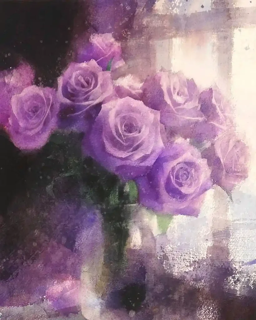 12. Impressionistic Purple Roses on Watercolor Paper