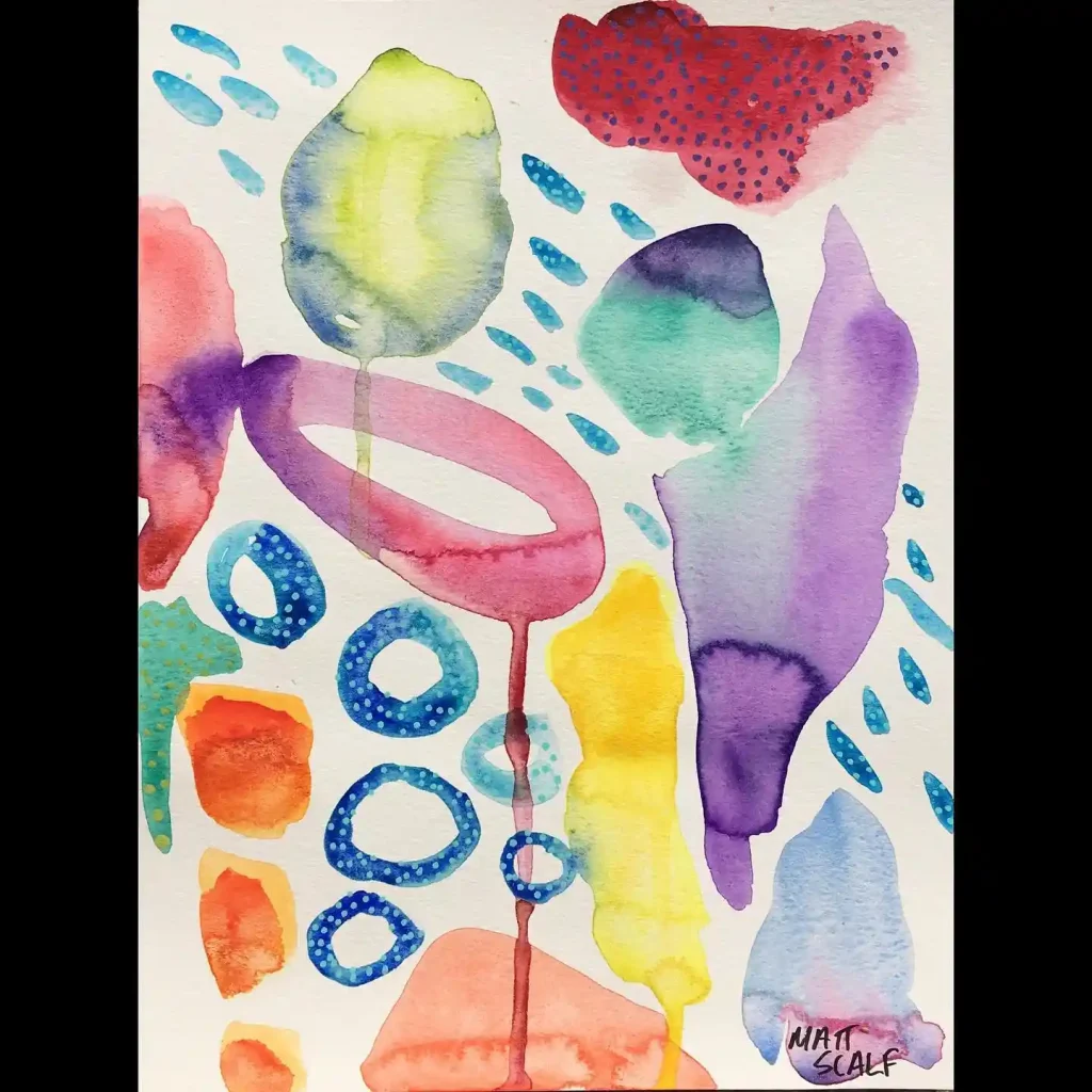 17. Playful Abstract Shapes on Watercolor Paper