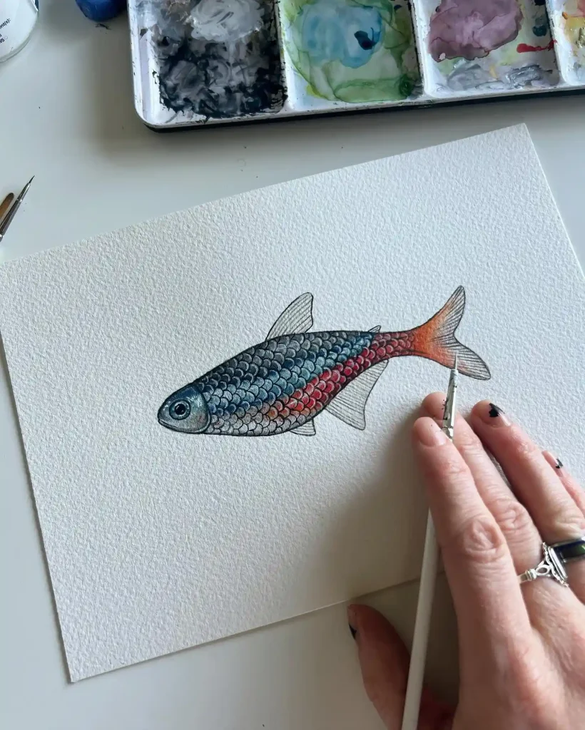 Dive into the tranquil world of watercolor fish drawing, where every brushstroke brings aquatic wonders to life on your paper. This art form is a beautiful way to capture the serene and vibrant essence of underwater creatures, blending color and water to create stunning effects.