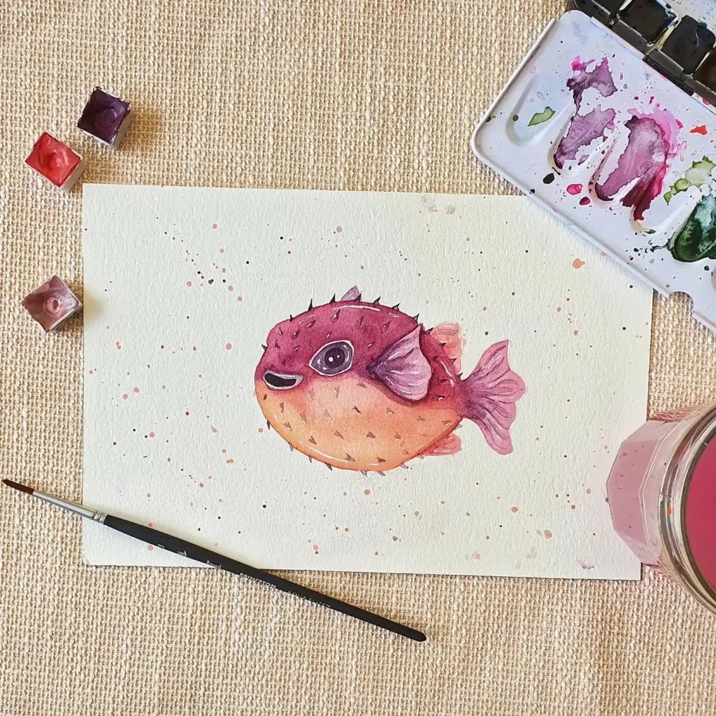 17. Playful Pufferfish on Watercolor Postcard Paper