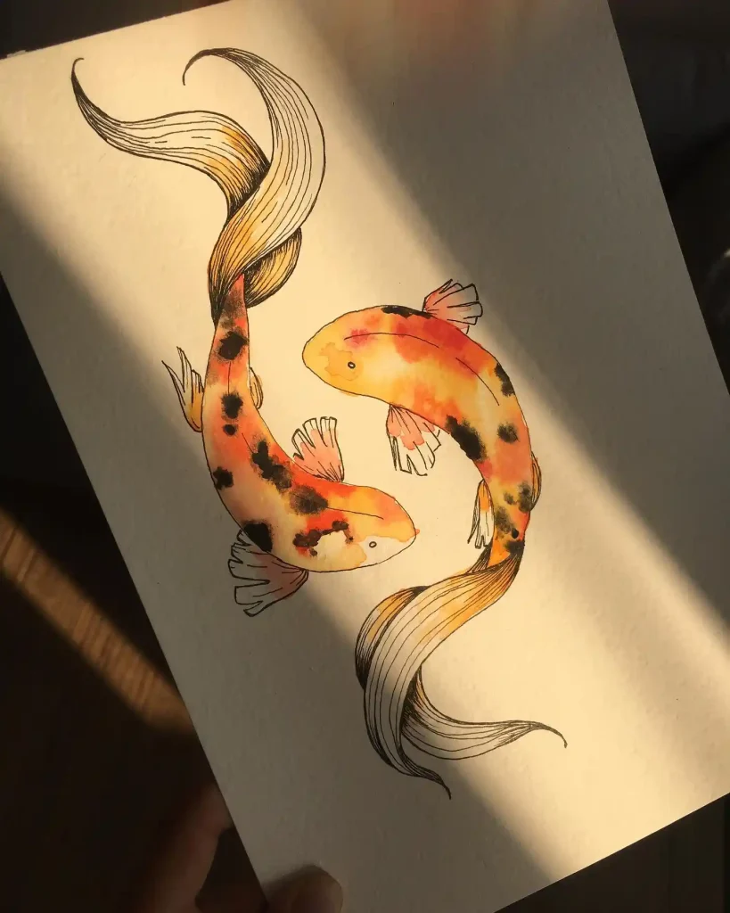 12. Twin Koi Fish on Textured Watercolor Paper