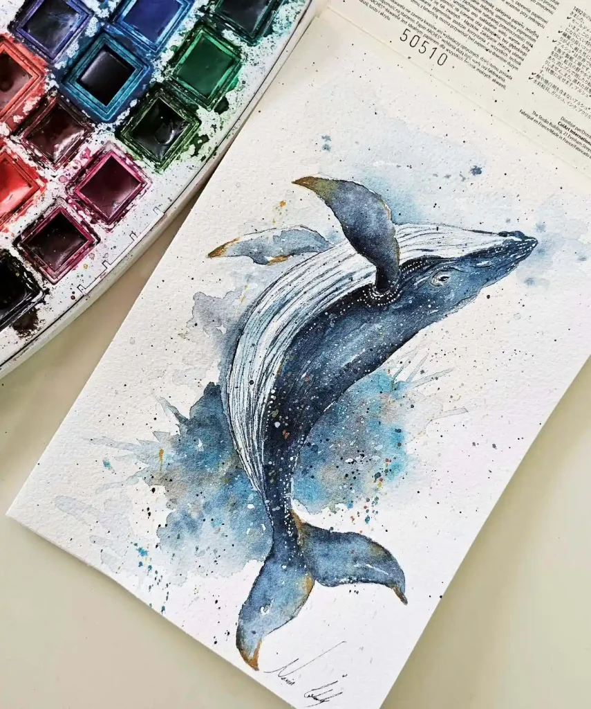 7. Majestic Whale Painting on Cold-Pressed Watercolor Paper