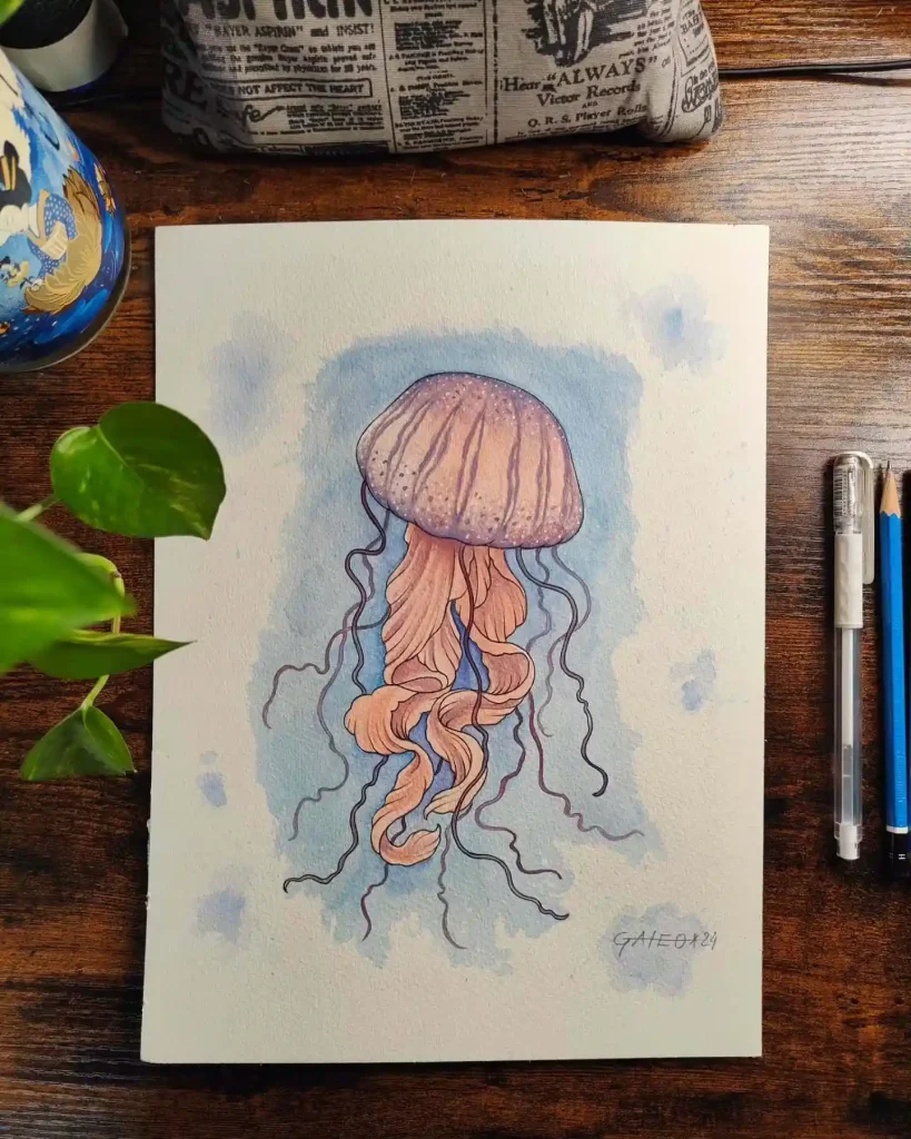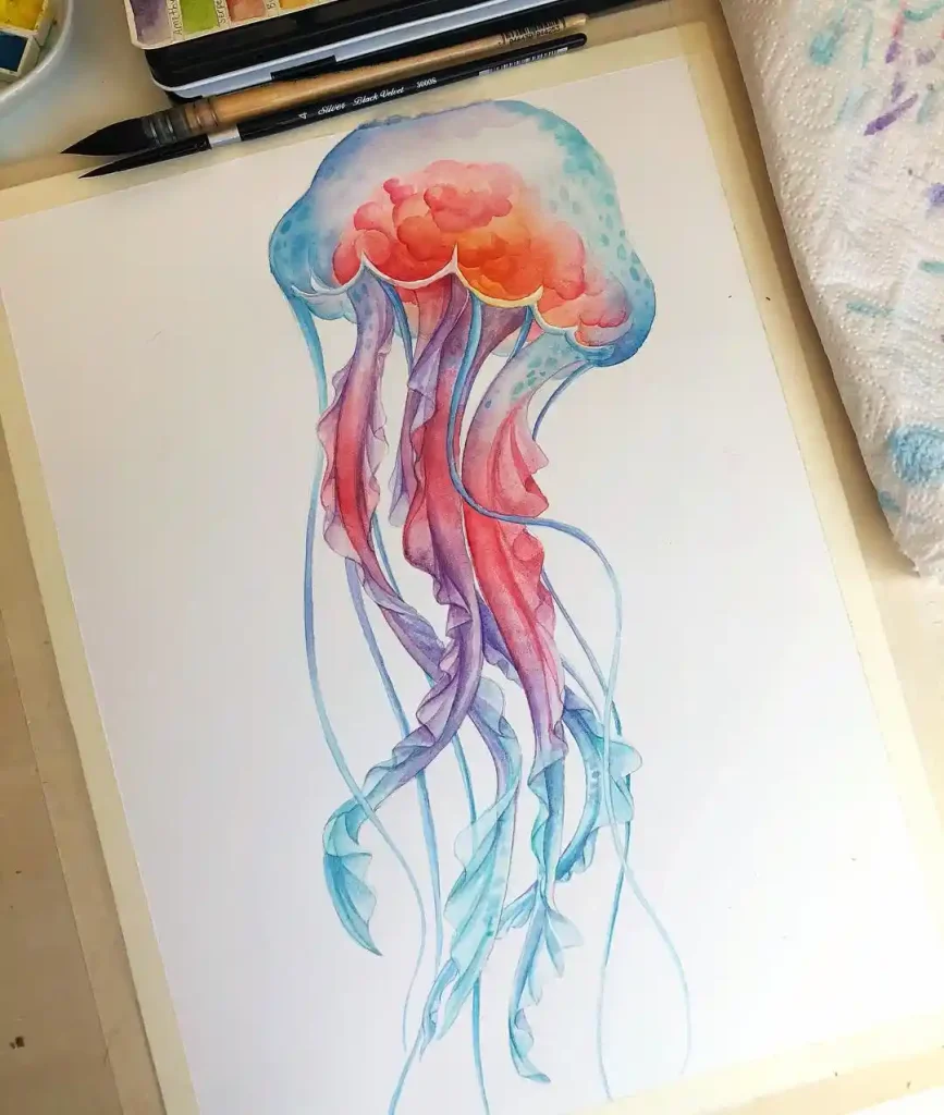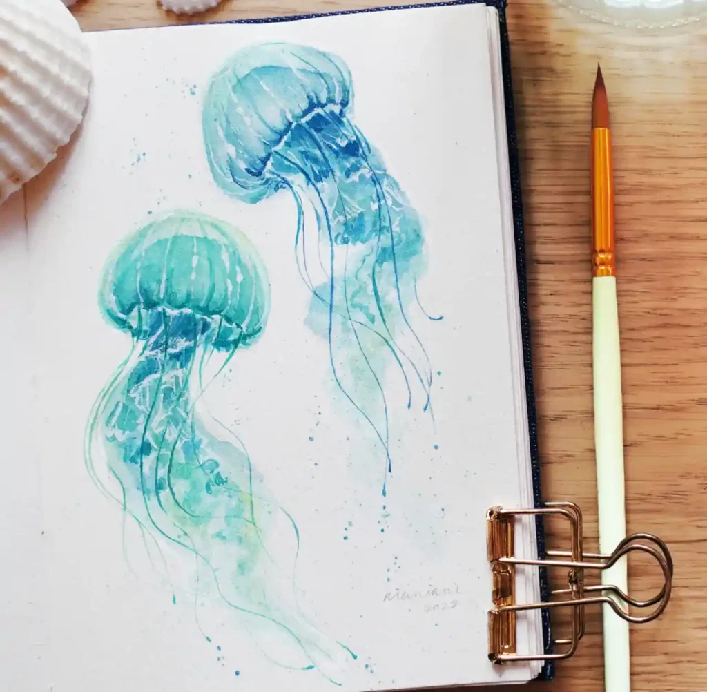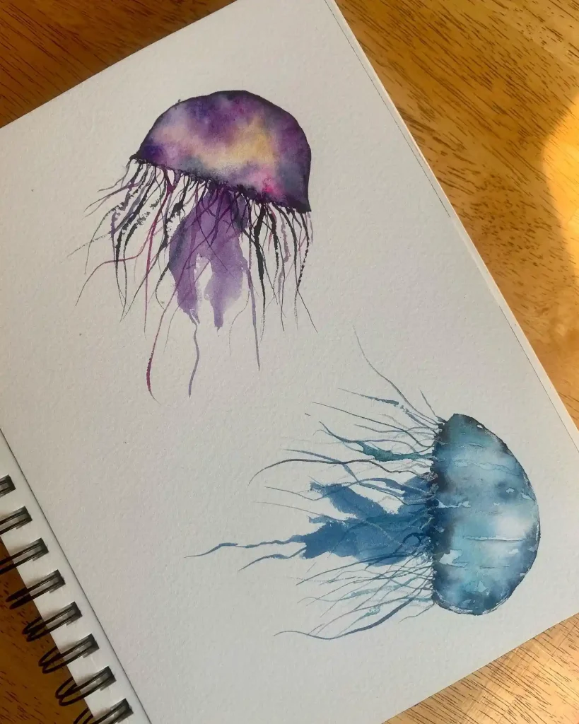 Watercolor jellyfish drawing ideas combine ethereal beauty with artistic freedom, creating stunning pieces that seem to float right off the paper. These translucent sea creatures are perfect subjects for exploring watercolor’s natural fluidity and luminous qualities.