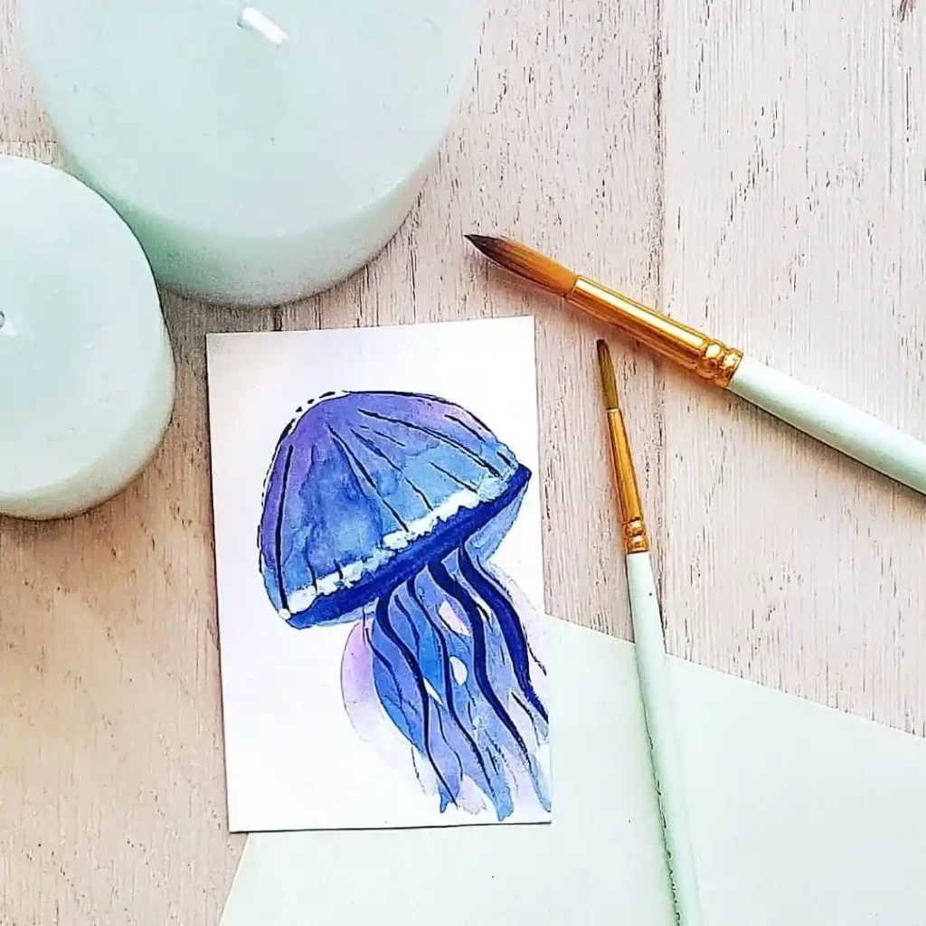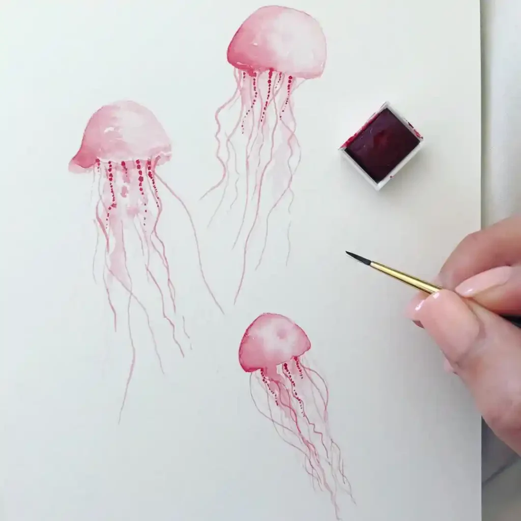 Painting jellyfish allows you to experiment with wet-on-wet techniques, vibrant color blending, and delicate layering without worrying about strict shapes. The forgiving nature of jellyfish forms makes them ideal for both beginners and advanced artists seeking creative expression.