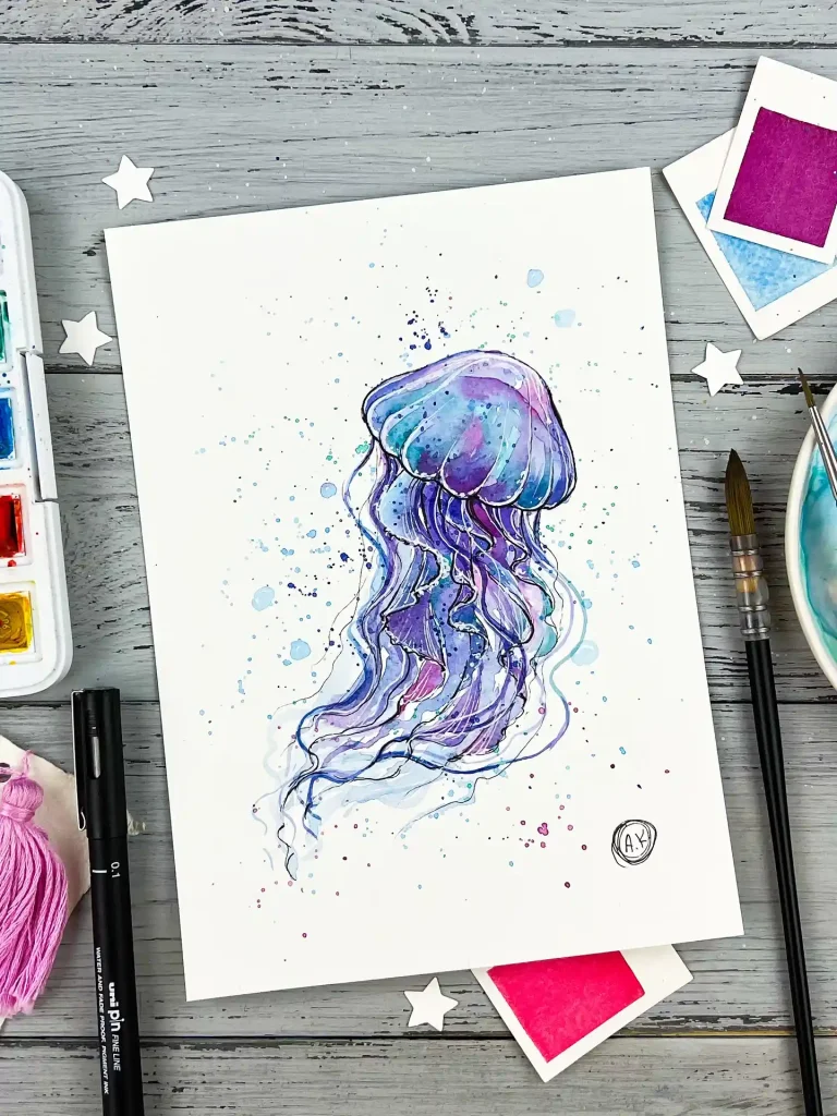 Ready to create your own floating masterpiece? Grab your watercolors, embrace the beautiful unpredictability, and let these graceful jellyfish inspire your most magical artwork yet!