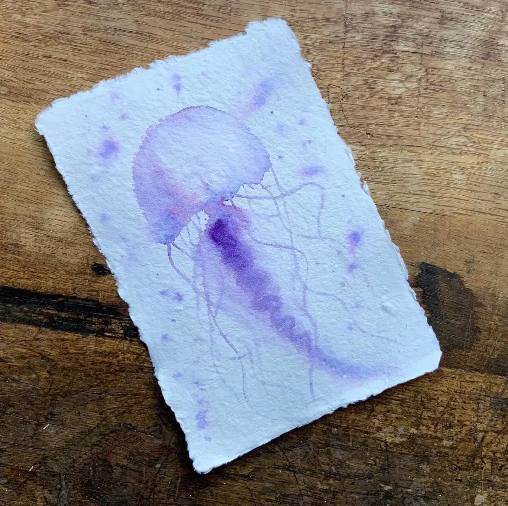 24. Textured Purple Jellyfish on Heavy Grain Paper